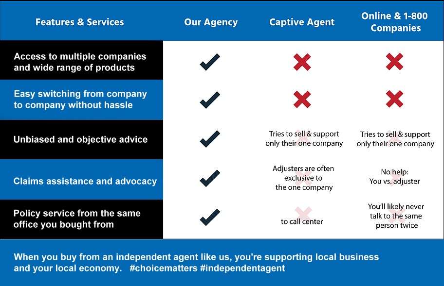 One of the biggest reasons you would want to use an independent agent like us, is we work and live in your community, so you’re supporting local economy and small business.